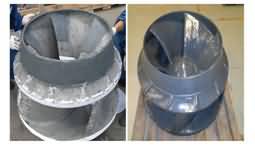 雙組分,以特種金屬碳化物、納米復(fù)合超硬顆粒為骨材、DNI-PDMG預(yù)聚體為基礎(chǔ)的耐磨復(fù)合材料,具有超強(qiáng)耐磨性、柔韌性、耐水、耐油、耐酸堿性。適用(-60℃-250℃)惡略環(huán)境中設(shè)備過流沖蝕(顆粒大于50mm)、設(shè)備的局部修復(fù)、設(shè)備預(yù)涂耐磨層,如旋流器、浮選柱、浮選機(jī)、泡沫槽、分級機(jī)、攪拌桶、溜槽、管件類、渣漿泵、脫硫泵、污水泵、往復(fù)泵、隔膜泵等泵類修復(fù)(典型用途見主要物理機(jī)械性能表)。