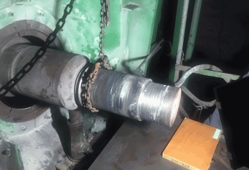 圖   2: 軋鋼機減速器輸出軸軸頸磨損,用NPT系列設備專用修復劑進行修復。