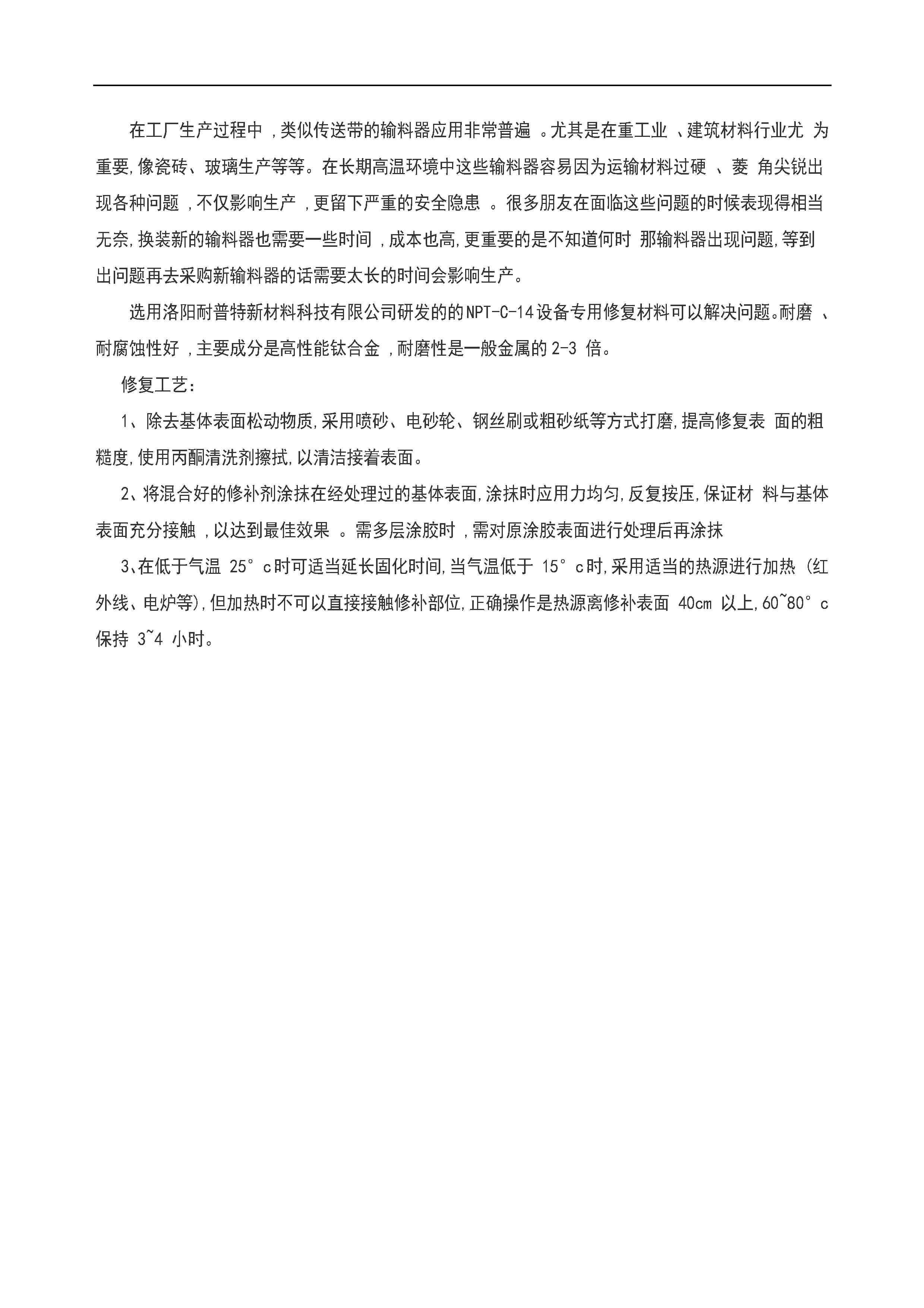 輸料器磨損修復(fù)