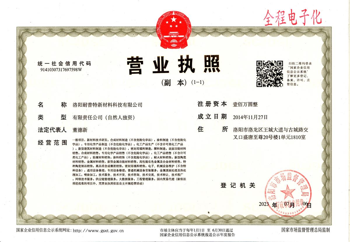 洛陽耐普特新材料科技有限公司m.qjbo.cn資質(zhì)證書。