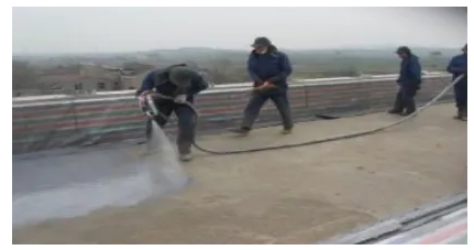 4、如果缺陷部位發(fā)現(xiàn)離噴涂時(shí)間較長(>6h),則應(yīng)對缺陷涂層表面(向外擴(kuò)展5-10cm范圍)打磨清理后,施作專門的處理劑,然后采用專用修補(bǔ)設(shè)備噴涂聚脲防水涂料并修補(bǔ)、刮平,使整個(gè)涂層連續(xù)、致密、均勻。