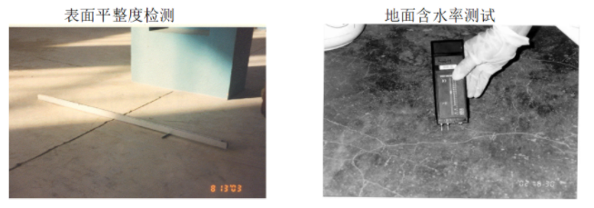 4)地下水含量測試。使用墻壁濕度計檢測地面濕度,濕度必須小于10%。