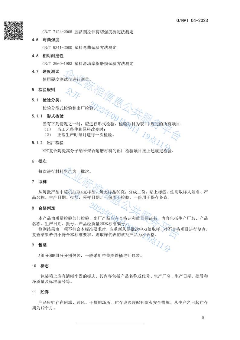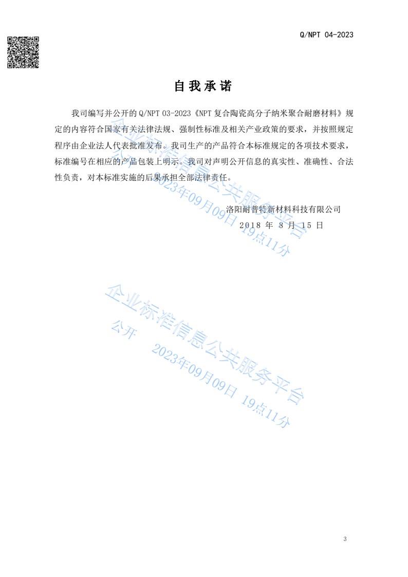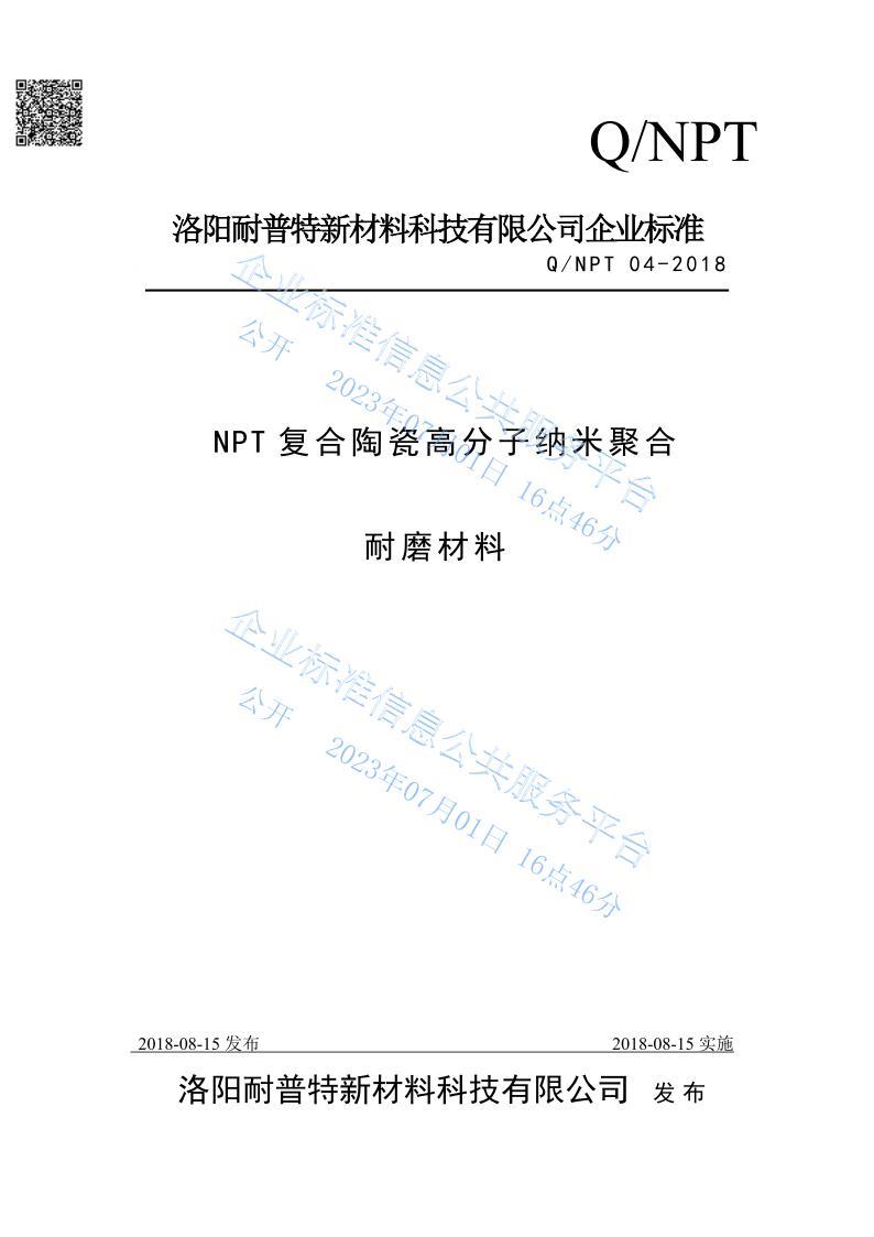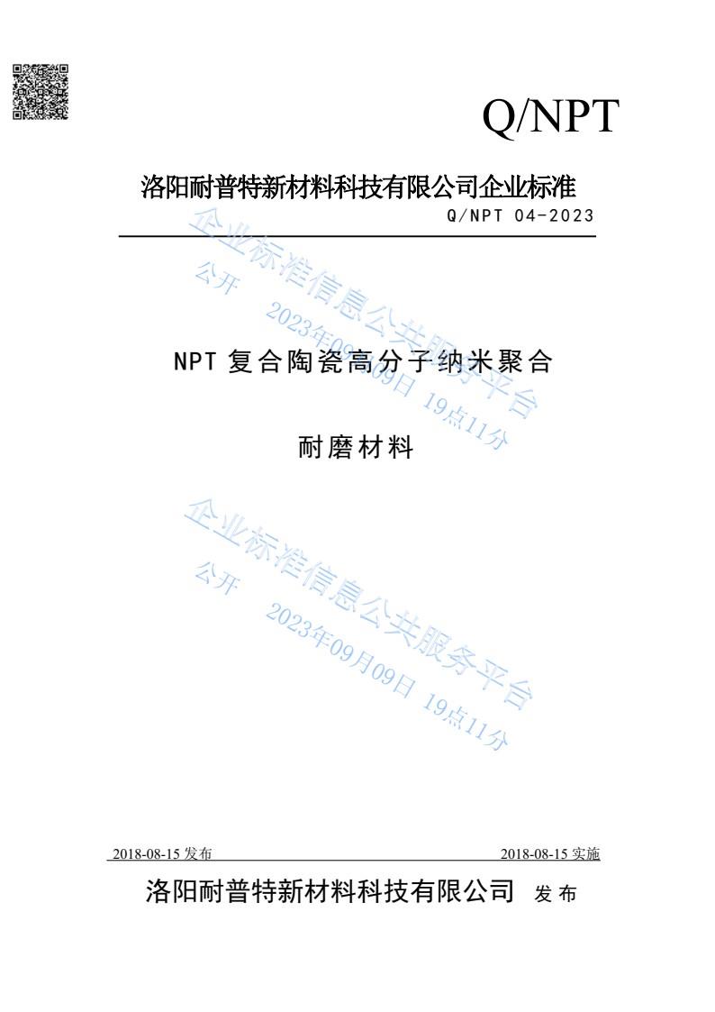 NPT復(fù)合陶瓷高分子納米聚合耐磨材料企業(yè)標準
