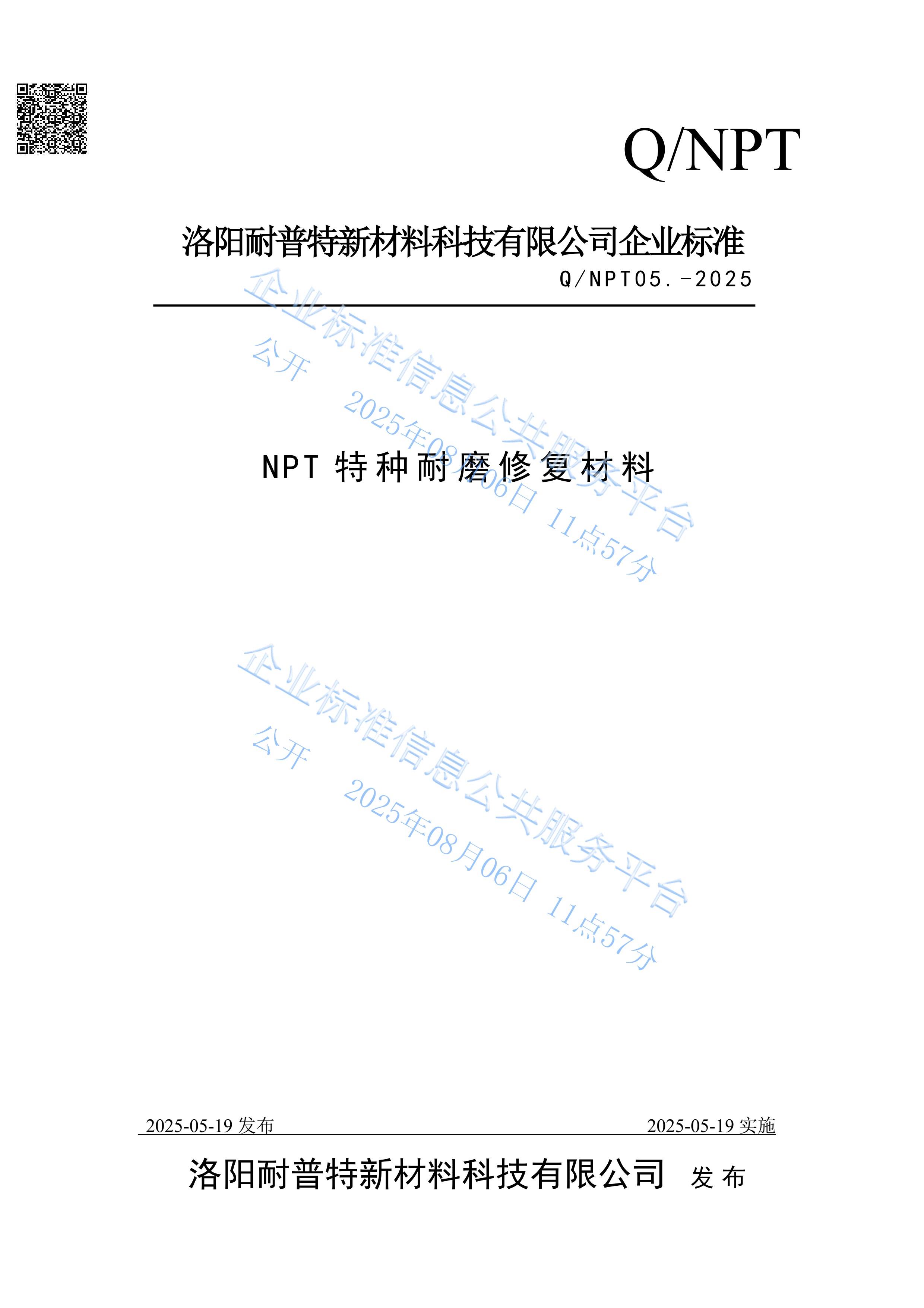 NPT特種耐磨修復材料企業(yè)發(fā)布標準