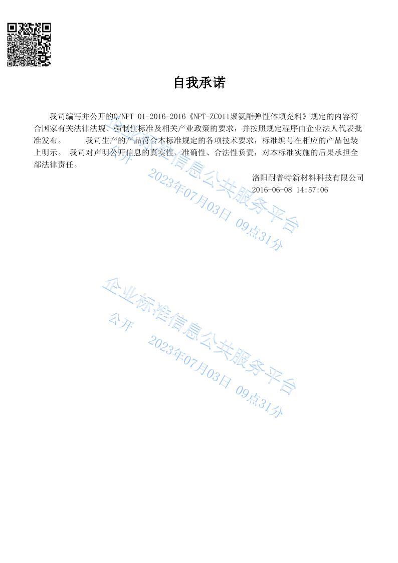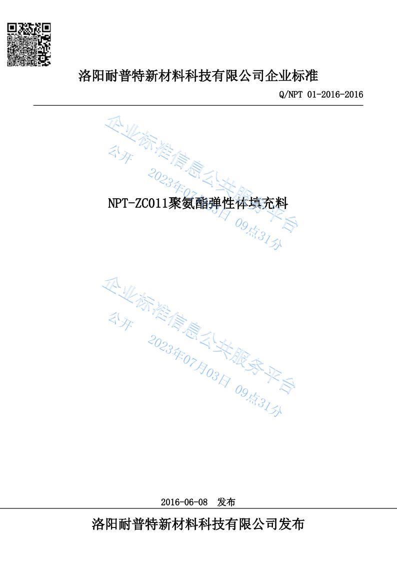 NPT-ZC011聚氨酯彈性體填充料企業(yè)標準