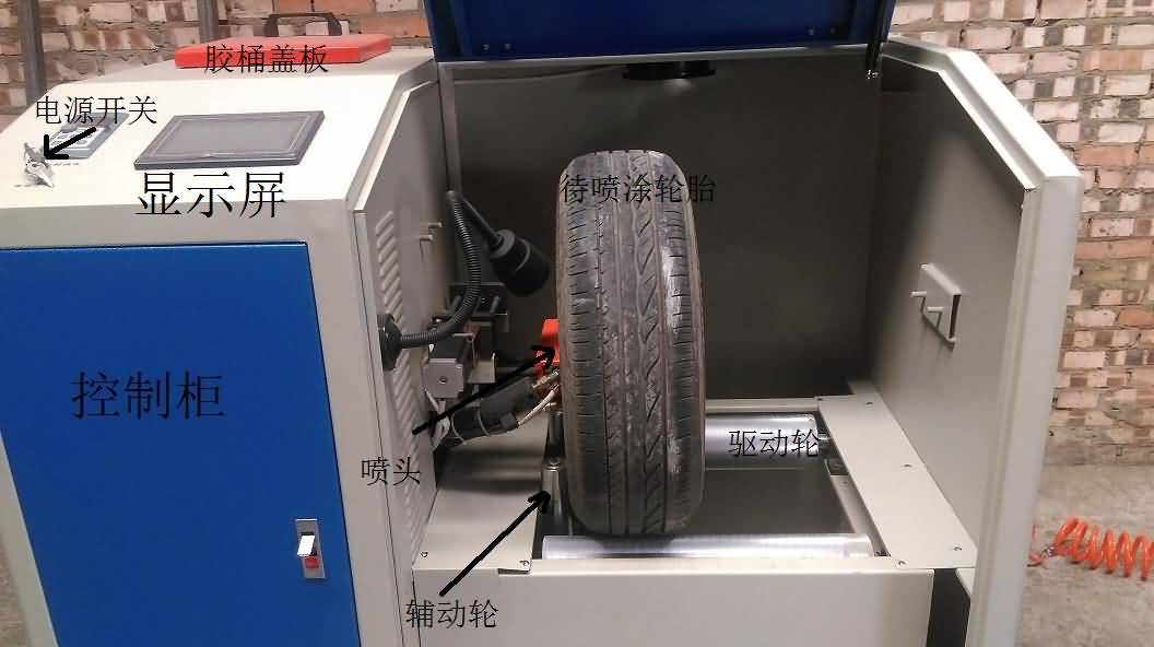 3、將打磨清洗干凈的輪胎放入輪胎噴涂設備中,開始涂膠。